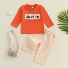 Dress your little one in style this season with this charming 2-piece fall outfit set. Perfectly designed for boys from newborn to 3 years old, this set includes a cozy long sleeve top with a playful farm car embroidery and matching striped pants. Made with soft, breathable fabrics, it’s gentle on delicate skin while offering the comfort your baby needs for everyday play, outings, or family photos.