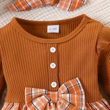Dress your little one in timeless charm with this Baby Girl Autumn Plaid Bow Dress. Designed for ages 0–18 months, this sweet dress combines comfort and style, making it perfect for the cozy autumn season. The long-sleeved design keeps your baby warm while the playful checkered pattern and oversized bow add a touch of cuteness. A matching headband completes the look, making this outfit picture-perfect for daily wear, parties, or memorable photo sessions.