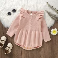 Dress your baby girl in effortless style with this charming cotton knit ruffle bodysuit. Designed for comfort and cuteness, this long sleeve romper is perfect for autumn days, keeping your little one warm and cozy while looking absolutely adorable. The soft, breathable cotton fabric feels gentle against delicate skin, making it a wonderful everyday outfit for newborns and infants up to 18 months.