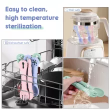 This cutlery set is best used during the early feeding stages, from 12 months up to preschool age. It’s ideal for home meals, daycare, or even on-the-go feeding. Unlike regular spoons, its unique design makes it special—soft enough for babies, yet strong enough to handle thicker foods as your child grows.