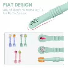 Your child’s safety comes first. Crafted with BPA-free silicone, this training cutlery is free from harmful chemicals and certified for food contact safety. The soft edges protect delicate mouths while the easy-grip handles make it simple for little fingers to hold. The non-slip, sticky design keeps the spoon and fork in place, reducing spills and frustration during mealtime.