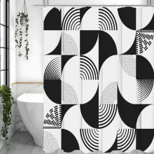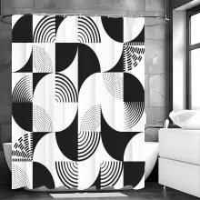 Upgrade your bathroom decor with our Black and White Geometric Shower Curtain. This stylish piece brings a modern touch to your space while ensuring maximum functionality. Crafted from high-quality polyester, this waterproof shower curtain not only keeps water where it belongs but also adds an elegant flair to your bathroom. It serves as a perfect backdrop, making your shower area feel more inviting and chic.