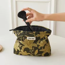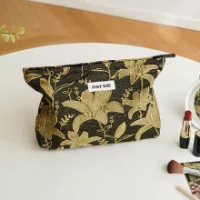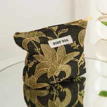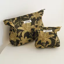 This cosmetic bag features a smooth zipper closure to keep your items safe and secure. Measuring compact enough to slip into your handbag or carry-on, it’s perfect for storing makeup, skincare, or small jewelry pieces. The soft polyester fabric ensures durability, while the embroidered details make it stand out from ordinary pouches. A portable wristlet strap adds extra convenience, allowing you to carry it with ease wherever you go.