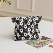 Keep your beauty must-haves and small treasures neatly stored in this charming black floral cosmetic bag. Designed with both style and practicality in mind, this pouch is perfect for carrying makeup, jewelry, and other small essentials whether you’re at home or on the go. The soft yet durable polyester fabric makes it lightweight, easy to clean, and long-lasting. A secure zipper closure keeps your items safe, while the compact pillow-shaped design ensures it slips easily into your handbag, backpack, or carry-on.