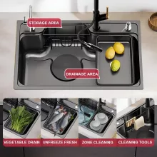 The Black Multifunctional Kitchen Sink stands out with its innovative combination of washing, cutting, and draining features in one compact design. Its robust stainless steel construction ensures durability, while the sleek black finish adds a stylish flair. With thoughtful engineering, this sink enhances efficiency, allowing you to tackle kitchen tasks effortlessly and with elegance.