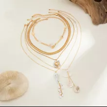 Bring a touch of effortless charm to your look with this stunning 5-piece layered necklace set. Designed with a bohemian flair, each piece blends delicate conch-inspired pendants and imitation pearls with chic metallic details. Whether you’re dressing up for a beachside party, a casual outing, or a special event, this set is the perfect finishing touch that makes every outfit shine.