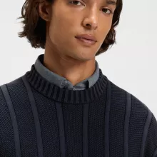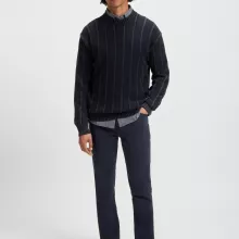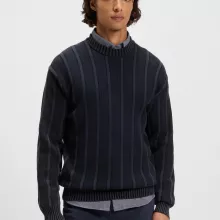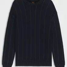 BOSS Men’s Dark Blue Cotton Sweater with Rib and Ricecorn Structure