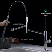 Upgrade your kitchen to the height of modern sophistication with this chrome magnetic suction brass kitchen faucet. Designed with both style and practicality in mind, it features a polished surface, single-handle control, and dual-function capabilities for hot and cold water. Perfect for enhancing the functionality and aesthetics of any kitchen, this faucet is the ultimate blend of elegance and convenience.