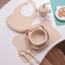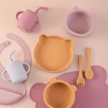 The suction feature on the plate and bowl makes mealtime easier for both parents and babies. No more chasing runaway plates or cleaning up spilled food—this set stays put, making your child’s mealtime more enjoyable and less messy. Additionally, the soft silicone utensils and bib offer extra comfort, allowing your little one to feed themselves with ease while keeping their clothes clean.