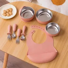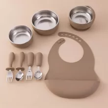 - 8-Piece Set includes a detachable bowl, bib, and more to cover all feeding needs.