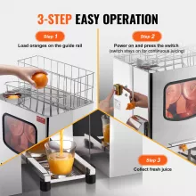 - Generous Capacity: Equipped with a spacious feed chute and top storage basket, this machine accommodates oranges between 2.2 to 3.2 inches, reducing preparation time.