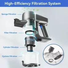 Equipped with a multi-stage high-efficiency filtration system, this vacuum captures up to 99.9% of dust and particles. Washable filters make maintenance simple while preventing secondary pollution, leaving your home cleaner and fresher.