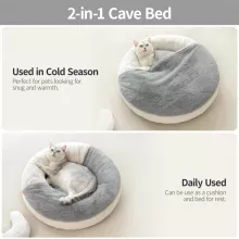 The unique donut shape and high edges provide head and neck support, while the spacious 22″ x 22″ size comfortably fits cats and small pets up to 20 lbs. Its hidden zipper makes it easy to assemble or remove for cleaning, and the non-slip bottom keeps it firmly in place, even during playful moments. This cat cave bed is perfect for daily lounging, cozy nighttime sleep, or as a special resting spot during cold seasons.