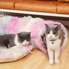 Provide your feline friend with a delightful combination of playtime and relaxation with our Cozy Cat Tunnel Bed with Plush Cushion. Designed with the curious and playful nature of cats in mind, this multifunctional cat tunnel bed offers a snug retreat that doubles as an entertaining playground. Made from high-quality plush material, this cat bed is the perfect cozy hideaway that your cat will love to curl up in during colder months. The plush interior provides warmth and softness, creating a perfect nest for your kitty to snuggle into.