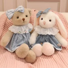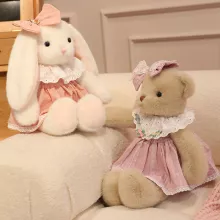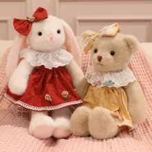 Unlike ordinary plush toys, this one stands out with its cute bow and lovely outfit that give it a unique personality. It is not just a toy but a heartwarming gift that shows love and care. Whether given as a present or kept as a cozy companion, this plush bear and bunny doll will always bring comfort and joy.