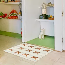 Crafted from soft polyester with a durable TPR (thermoplastic rubber) base, it ensures both comfort and slip-resistance. The vibrant bowknot print adds personality, while the Korean-inspired design blends beautifully into modern, aesthetic home décor. Available in two versatile sizes—approximately 15.7×23.6 inches and 19.7×31.5 inches—it fits easily in small or large spaces alike.