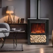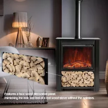 Transform your home with the stunning Innsbruck LED Electric Fireplace Stove. Designed to evoke the charm of a classic wood-burning stove without the hassle, this elegant piece combines modern technology with traditional aesthetics. The faux-wood decorative panel and a soot-black finish perfectly mimic a real wood stove, while the chimney flue adds an authentic touch to its design. Whether you’re sprucing up your living room, creating a cozy guest room, or adding a stylish focal point to your RV, the Innsbruck fireplace delivers warmth and charm with ease.