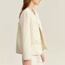 Upgrade your wardrobe with the perfect blend of sophistication and style. This elegant women’s crewneck jacket, designed for the modern socialite, exudes charm and confidence. With its exquisite beaded buckle details and fragrant wind-inspired design, this jacket is the ultimate statement piece for autumn and winter.