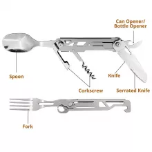 • 5-in-1 Functionality: Includes knife, fork, spoon, corkscrew, and can opener.