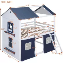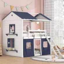 Give your kids the ultimate sleeping and play experience with this stunning Full Loft Bunk Bed with Tent and Playhouse Design. Thoughtfully crafted with a house-shaped frame, charming windows, and a tent that adds a playful touch, this bed is perfect for creating a cozy retreat that inspires imagination. Whether it’s storytime, playtime, or bedtime, this multi-functional bed makes every moment magical while adding a unique charm to their bedroom.