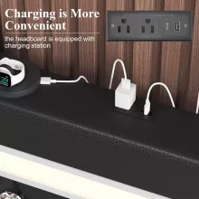 - Built-In Charging: USB, Type-C, and outlets for easy device charging right from your bed.