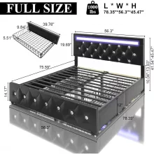 The bed frame’s RGB LED lights offer over 60,000 colors and multiple modes, including music sync for a fun and immersive experience. Whether you want a soft glow for bedtime reading or a vibrant ambiance for a movie night, the customizable lighting sets the perfect mood.