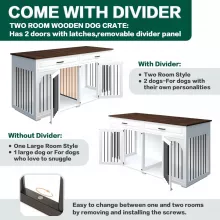 This wooden dog crate stands out as a practical, stylish, and versatile piece of furniture. The removable divider allows you to customize it for one or two dogs, while the durable materials ensure long-term use. Its ability to function as a TV stand or side cabinet makes it a valuable addition to any space, whether it’s a living room or a utility area.