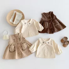 Give your little one the perfect mix of comfort and charm with this adorable embroidered vest dress. Designed for autumn days, this sleeveless A-line dress features delicate floral embroidery, a classic O-neck, and single-breasted button closure for easy wear. Pair it with the optional long-sleeve shirt for a layered look, or let her wear it on its own for a lighter feel. The knee-length cut adds elegance while allowing freedom to move and play.