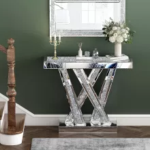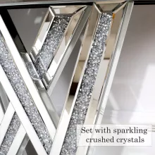 The standout feature of this console table is its exquisite crushed crystal inlay. Unlike ordinary furniture, this piece sparkles and shines, making it an instant conversation starter. Its mirrored panels not only reflect your décor but also create the illusion of a larger space. Every detail, from the streamlined silhouette to the fine craftsmanship, is designed to impress.