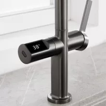 Transform your kitchen into a space of elegance and efficiency with this gun gray brass kitchen faucet. Designed with modern sensibilities, this faucet combines cutting-edge technology and a refined aesthetic to elevate your daily kitchen routine. Whether you’re rinsing vegetables or cleaning up after a meal, this faucet’s dual-function capability and digital display make every task a breeze.