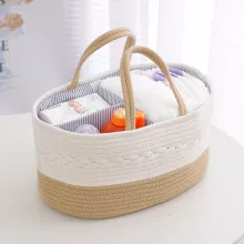 I can't express enough how much I adore diaper caddy. The handcrafted cotton rope design is not only aesthetically pleasing but also incredibly durable, providing a sense of reliability that every parent appreciates. What truly stands out to me though is the divider feature - it's an absolute game-changer It allows me to neatly categorize and store all my baby essentials, from diapers and wipes to creams and pacifiers. No more frantic searching in the middle of the night for a lost pacifier or a new pack of wipes! Plus, its neutral design fits effortlessly into any nursery decor theme which is always a bonus.