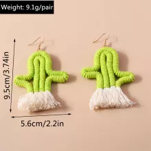 Bring a touch of fun and style to your look with these handmade knitted cactus drop earrings. Designed with soft yarn and paired with zinc alloy hooks, these earrings blend comfort with durability. Their playful plant-inspired shape makes them a standout accessory for anyone who loves adding a little personality to their outfit. Lightweight and easy to wear, they’re perfect for both everyday fashion and special occasions.