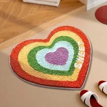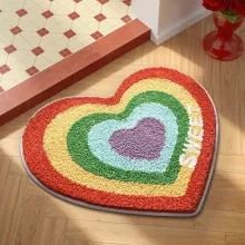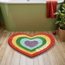 Brighten up your home with this heart-shaped tufted rainbow bathroom mat. Designed with a playful rainbow pattern and cozy tufted texture, this rug adds a pop of color and personality to any room. Whether placed in your bathroom, bedroom, or by the doorway, it instantly makes your space feel warm, inviting, and stylish. Its soft surface provides comfort underfoot, while the charming heart shape gives it a unique and aesthetic touch perfect for modern home decor.