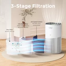 Engineered with a Clean Air Delivery Rate of 264 CFM, this purifier refreshes the air in spaces up to 3,120 sq. ft. once every hour. The advanced True HEPA filter captures 99.97% of airborne particles as small as 0.1–0.3 microns, including pollen, pet dander, smoke, and household dust. For added versatility, you can choose specialized filters such as the Toxin Absorber Filter for smoke and VOCs or the Pet Allergy Filter for furry family members.