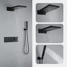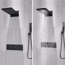 This shower system stands out with its elegant design and advanced features. The waterfall water outlet provides a unique and relaxing experience, while the durable brass construction ensures it remains a centerpiece in your bathroom for years. Its simple yet luxurious design makes it perfect for modern homes seeking a balance of style and practicality.