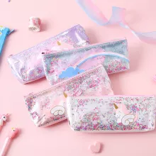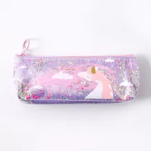 I've recently purchased this charming pencil case and am genuinely impressed by how practical yet stylishly designed it is! The unicorn motif coupled with shimmering sequins adds an element of whimsy that brightens up even mundane tasks like jotting down notes or sketching ideas during meetings at work or school. Despite its aesthetic appeal though, there's no compromise on functionality - It’s roomy enough for all necessary stationery items (and then some!) yet remains conveniently compact for easy portability in bags or backpacks. Moreover, made from durable PVC material means longevity isn’t something you need to worry about with this product. It's a perfect blend of form and function!