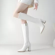Turn heads wherever you go with these stunning knee-high boots designed for women who love to combine elegance with comfort. With a sleek pointed toe and a bold 3.5-inch block heel, these boots are perfect for elevating your everyday look or making a lasting impression at special events. Crafted with high-quality PU leather and finished with a modern zipper detail, they bring together timeless style and modern sophistication.