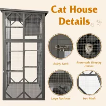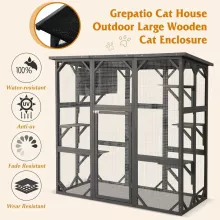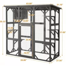 Transform your outdoor space into a paradise for your feline friends with this weatherproof and feature-rich catio. The spacious layout, durable materials, and thoughtful details make it a must-have for any cat-loving home. Treat your cats to the adventure they crave—order your wooden outdoor cat enclosure today!