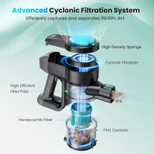 Equipped with a high-performance 180W motor and a powerful 20Kpa suction, this vacuum is built to deliver deep cleaning results. The rechargeable 2200 mAh battery offers up to 40 minutes of runtime in Eco Mode, while Standard and Max modes let you adjust the power based on your cleaning needs. With a 5-stage HEPA filtration system, it not only captures visible dirt but also traps fine dust particles, keeping the air in your home fresh and clean.