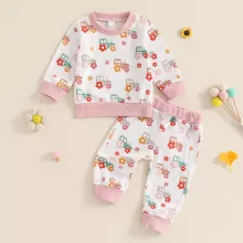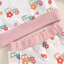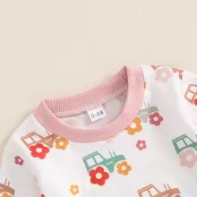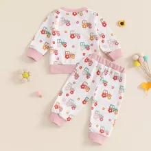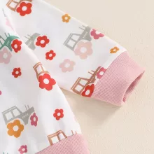 Little Girls Floral Tractor Print Long Sleeve Fall Set – 2PCS Outfit