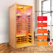 Transform your home into a personal wellness retreat with this luxury 1-person infrared sauna. Designed to deliver the therapeutic benefits of FAR infrared heat, this sauna promotes relaxation, detoxification, and improved circulation—all in the comfort of your own space. Its elegant design and cutting-edge technology make it a must-have for anyone looking to enhance their health and well-being.