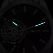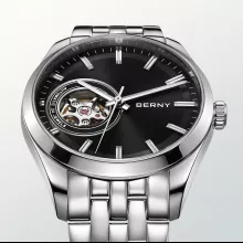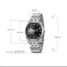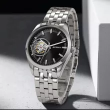 This men’s automatic watch combines refined aesthetics with reliable performance. Its unique skeleton dial reveals the artistry of mechanical movement, while luminous hands ensure readability at any hour. Built with durable stainless steel and protected by sapphire crystal glass, it’s made to last while maintaining a polished, professional look.