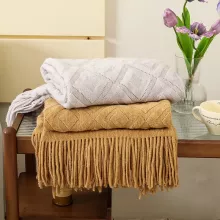 Transform your living space with this luxurious Chunky Knit Throw Blanket. Made from 100% acrylic, this soft and cozy blanket offers the perfect blend of comfort and sophistication, whether draped over your couch, sofa, or bed. Its textured, cable-knit design with fringed tassels brings a modern, yet classic feel that complements any interior style. Plus, with its multiple color options, finding the perfect match for your home décor is a breeze.