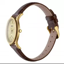 Powered by a reliable quartz movement, this timepiece ensures accurate timekeeping you can depend on. The 7.5mm thin case in a classic gold-tone design rests comfortably on your wrist, while the mineral glass lens offers durability and clarity. With a lightweight build of just 1.5oz, it delivers all-day comfort without compromising on style. Whether worn at an important meeting, a formal event, or a night out, this watch is designed to make a lasting impression.