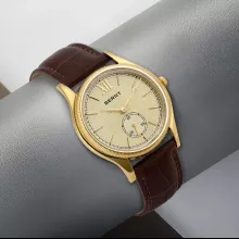 What makes this watch special is the perfect balance of elegance and practicality. The minimalist dial paired with subtle fluted patterns adds character without being overpowering. Its quick-release strap allows you to switch looks effortlessly, while the ultra-thin gold case adds a sophisticated edge. Designed to complement every gentleman’s wardrobe, it’s not just a timepiece—it’s a statement of style and confidence.