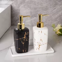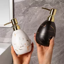 Bring timeless elegance into your daily routine with this beautifully crafted ceramic dispenser. Designed with a Nordic-inspired marble finish and complemented by a golden pump, this bottle transforms simple essentials like shower gel, shampoo, or hand lotion into a statement of style. Its smooth ceramic body and refined details add a touch of sophistication, making it a perfect accent piece for any modern or classic bathroom décor.