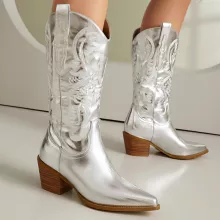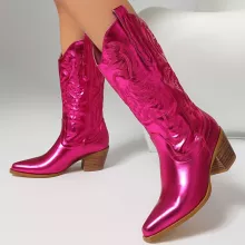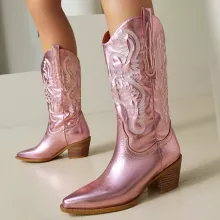 Bring a bold twist to your cold-weather wardrobe with these luxurious mid-calf ankle boots – the perfect blend of western-inspired charm and modern chic. Crafted for confident women who love to stand out, these boots come in striking pink, green, silver, and rose hues that instantly elevate any outfit.