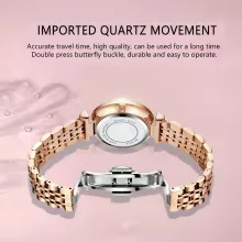 Discover a watch that combines modern style with classic sophistication. This luxury women’s quartz watch is designed to make every moment shine, featuring a stainless steel band, diamond-accented details, and a sleek round dial. Whether you’re heading to the office, enjoying a casual outing, or dressing up for a special evening, this watch adds the perfect finishing touch to your look.