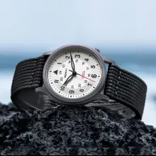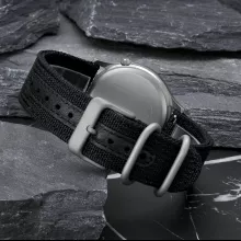 The titanium case provides incredible strength while remaining remarkably light at just 1.3 oz (37 g). Combined with a comfortable canvas strap and titanium buckle, it feels effortless on your wrist. Plus, the quick-release strap design makes it easy to swap bands for different occasions. With 5ATM water resistance, this watch is perfect for everyday wear, outdoor activities, and even light swimming.