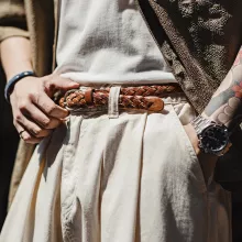 Made with vegetable-tanned cowhide, the belt is naturally textured, rich in character, and built to last. The smooth surface and solid design highlight a rugged yet refined appeal. Measuring approximately 40.7 inches in length and 1 inch in width, it offers a comfortable fit that feels secure without being bulky. A sturdy zinc alloy buckle completes the look, giving a touch of sophistication while ensuring long-lasting wear.